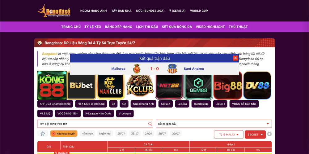 Xem Kết quả bóng đá và Tham gia các kèo cá cược tại bongdaso